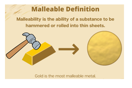 It is a property of substances that can be changed into thin sheets while beating up. For example, metals like gold and silver are beaten up into thin sheets with a hammer.